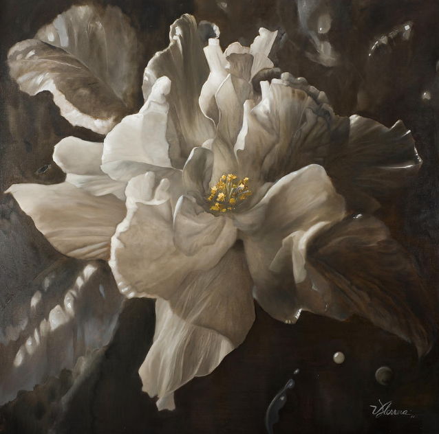 Conocida por sus grandes hibiscus sumergidos en luces y sombras, y a través de sus brochazos sutilmente restringidos, Victoria nos invita a descubrir una nueva realidad y lo que para ella significa la verdadera riqueza de la experiencia humana.