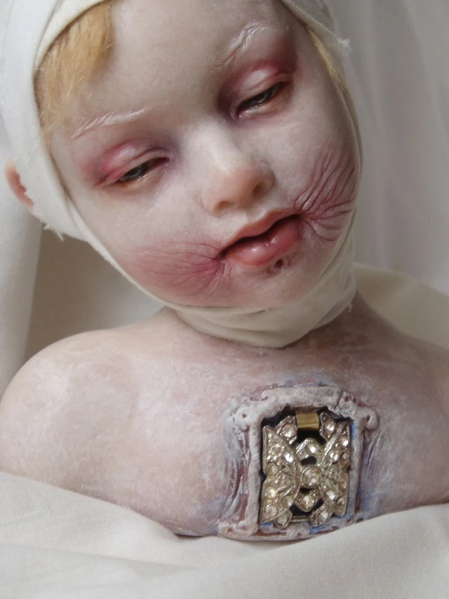 Surrealista pintor / escultor inspirado en los métodos de los antiguos maestros, el significado profundo con la naturaleza, los medios naturales y los oídos afinados para el espíritu. "Algunos llaman a este espeluznante pero, creo que su belleza -. la decadencia de la 'casa de la carne" Como la fruta madura, libre un auto radiante. No soy un artista morboso por el bien de inquietante o chocante, pero, tengo un mensaje sutil de transmitir que sólo puede ser expresado de esta manera. A través de los santos niños sabios y poderosos guerreros, videntes y erizos de mar, que representan el niño que todos llevamos dentro. Mis cifras son un rayo de luz en lugares oscuros. almas errantes con historias personales de los rituales complejos, la conciencia aguda, estrangment, el deterioro y la belleza salvaje en un terreno no muy parecido al nuestro. Se Golem nacido de ceniza, cera, barro y sangre y de los lugares primordiales en mi psique. " fuente de